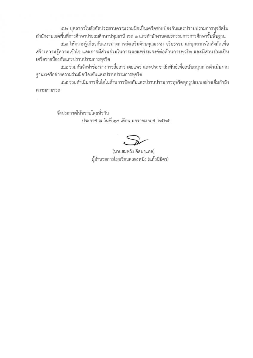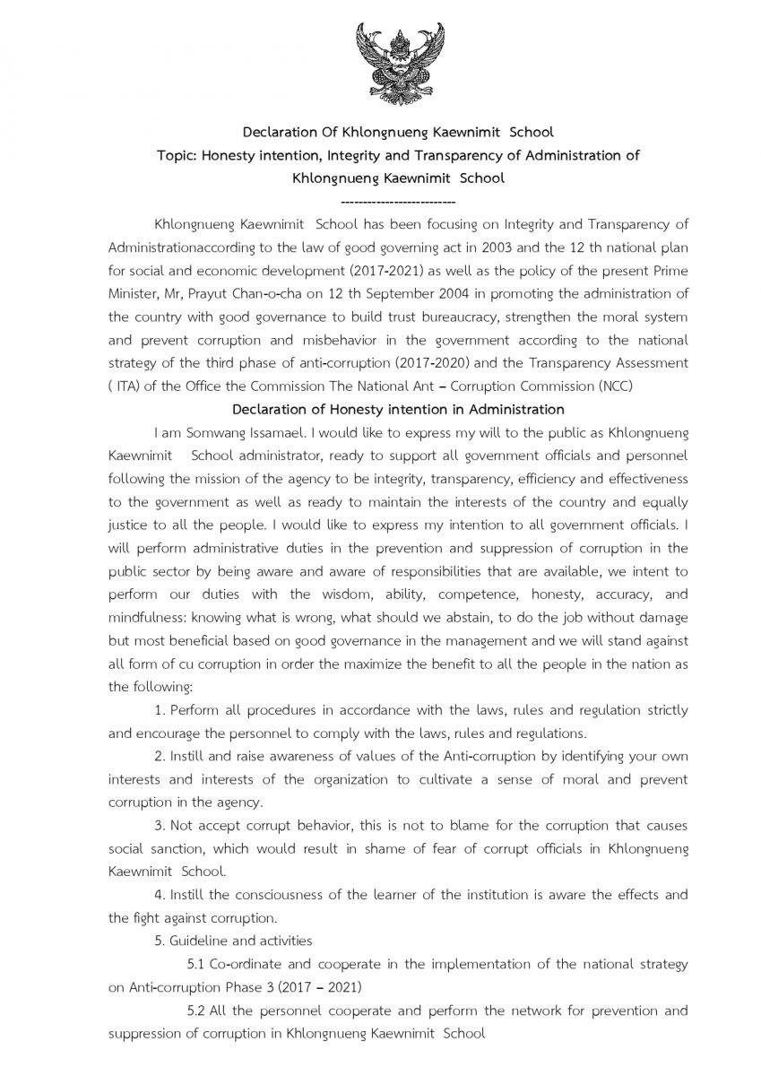 มาตรการส่งเสริมคุณธรรมและความโปร่งใสภายในสถานศึกษา