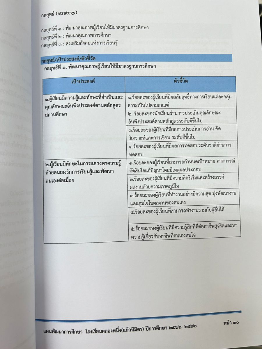 แผนยุทธศาสตร์ หรือ แผนพัฒนาสถานศึกษา