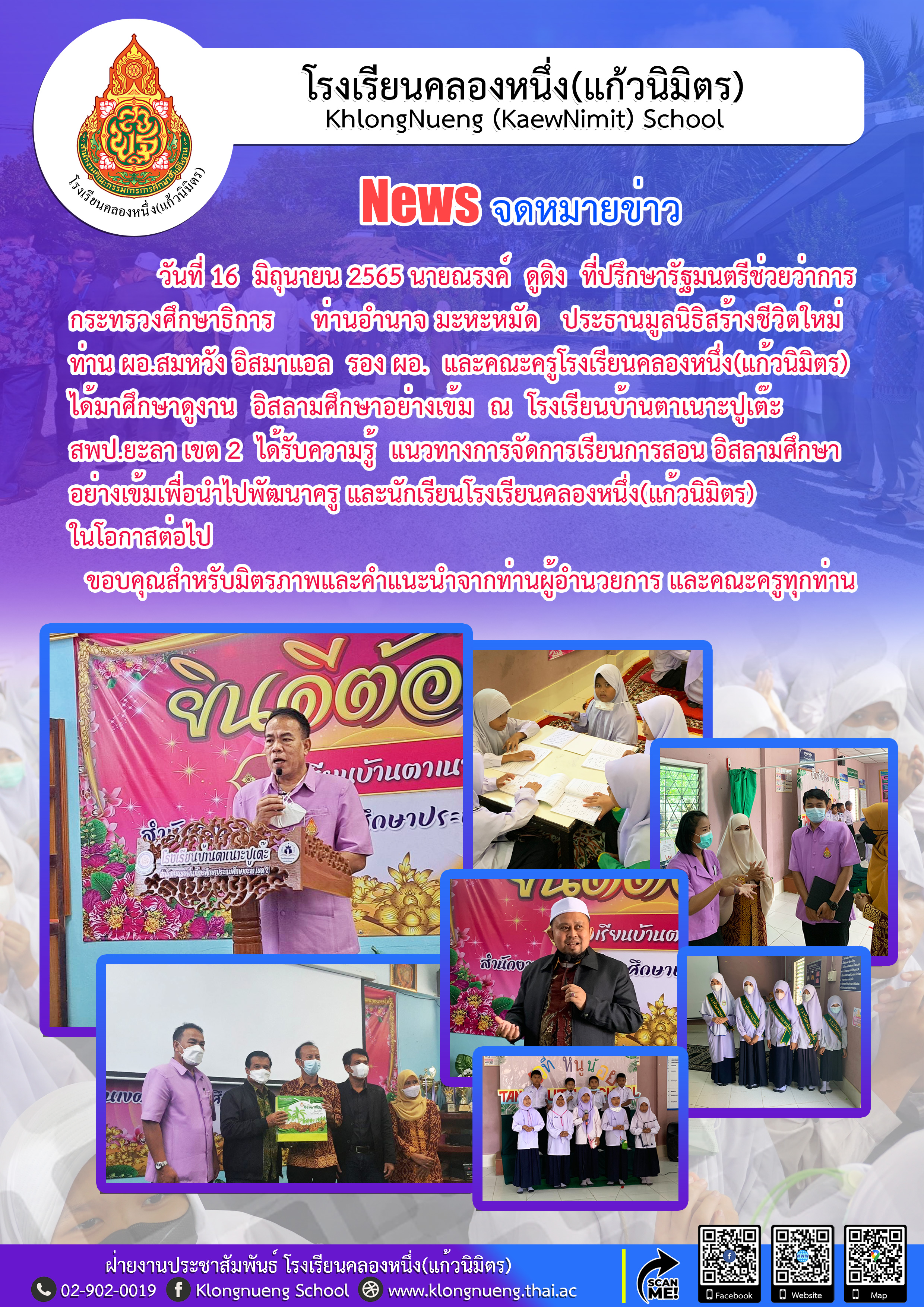ท่าน ผอ.สมหวัง อิสมาแอล รอง ผอ. และคณะครูโรงเรียนคลองหนึ่ง(แก้วนิมิตร)