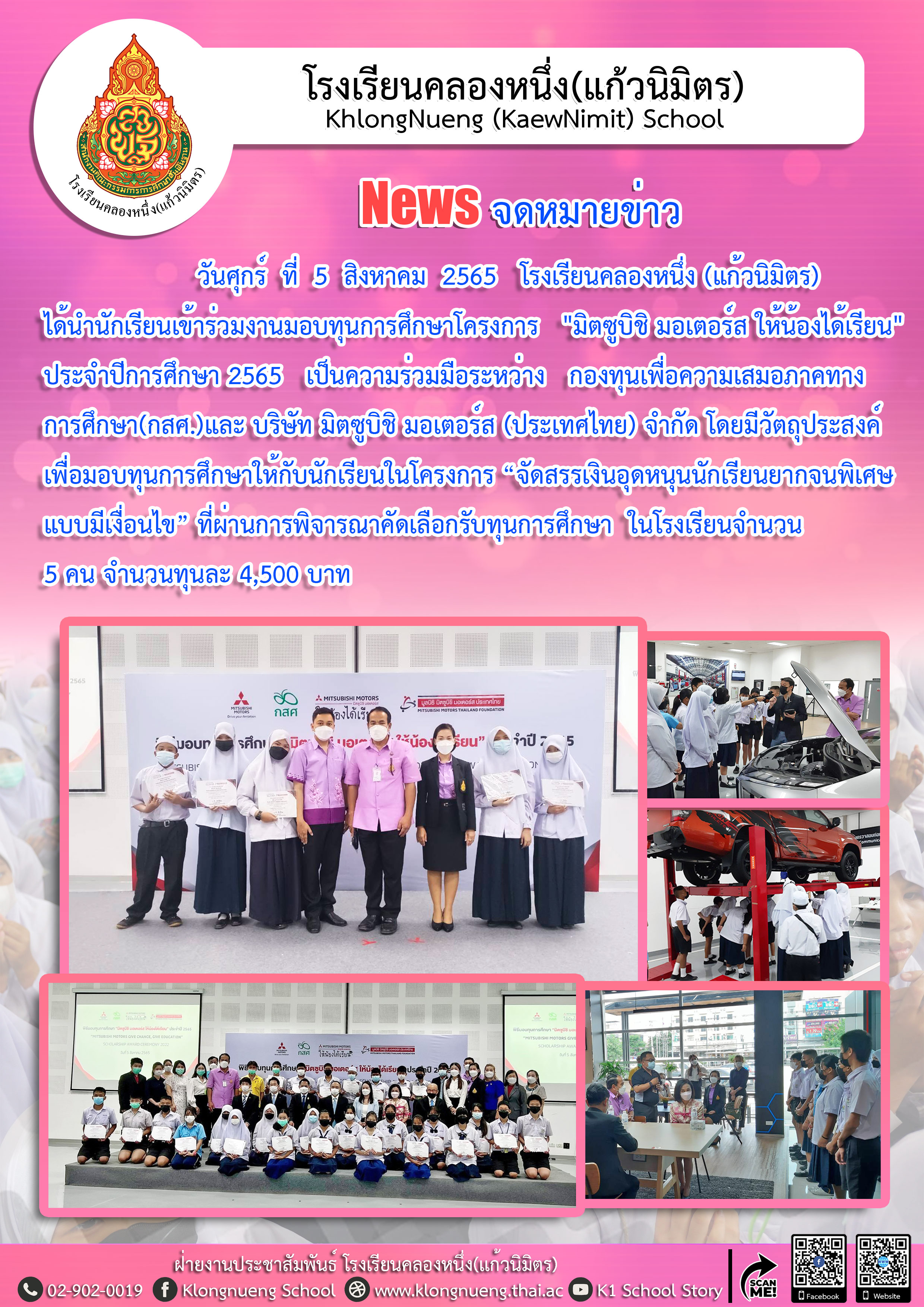 5 สิงหาคม 2565 รับมอบทุนการศึกษาจากโครงการ