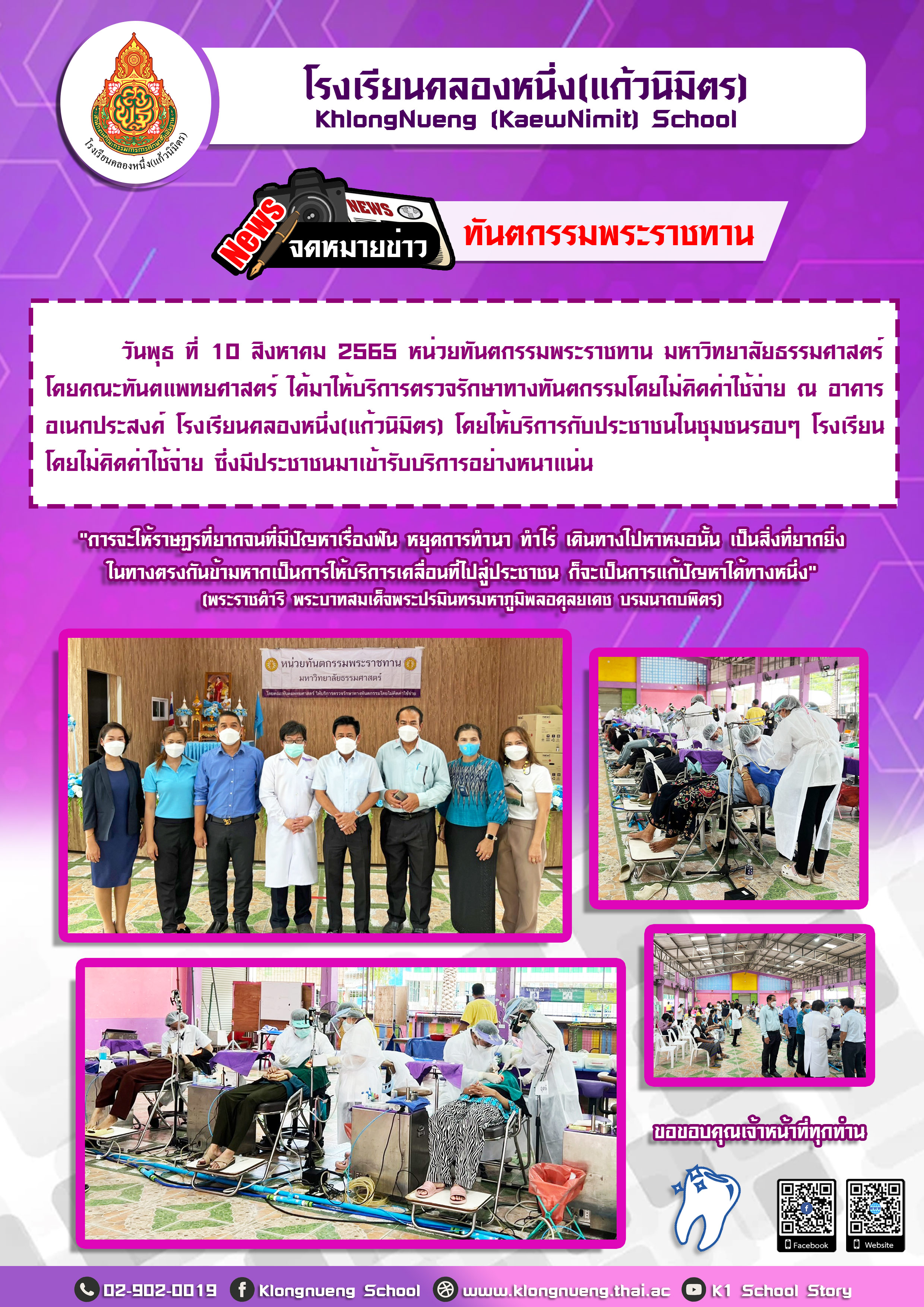 10 สิงหาคม 2565 ทันตกรรมพระราชทาน