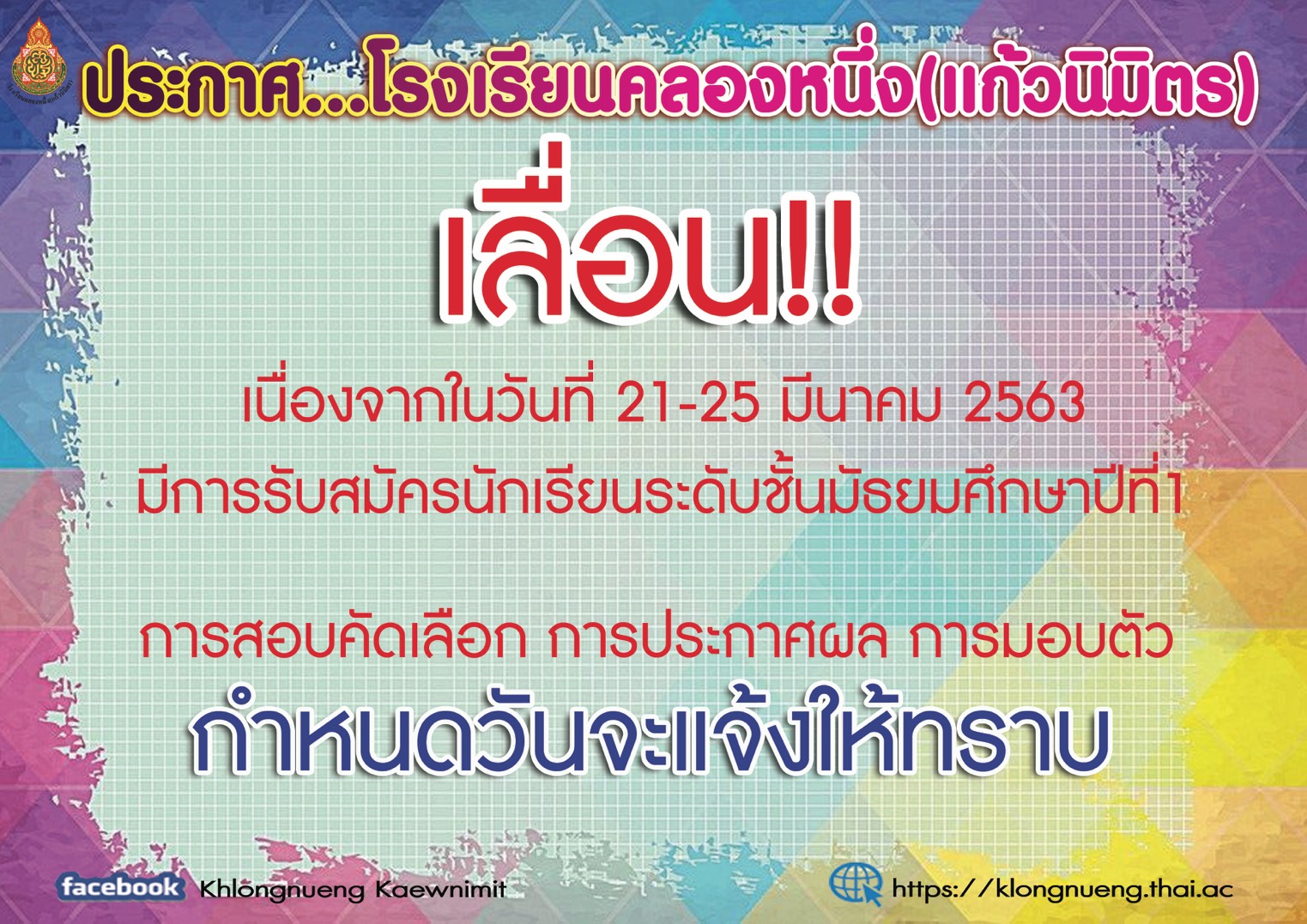 เลื่อนการรับสมัคร นักเรียน ระดะบชั้นมัธยมศึกษาปีที่1