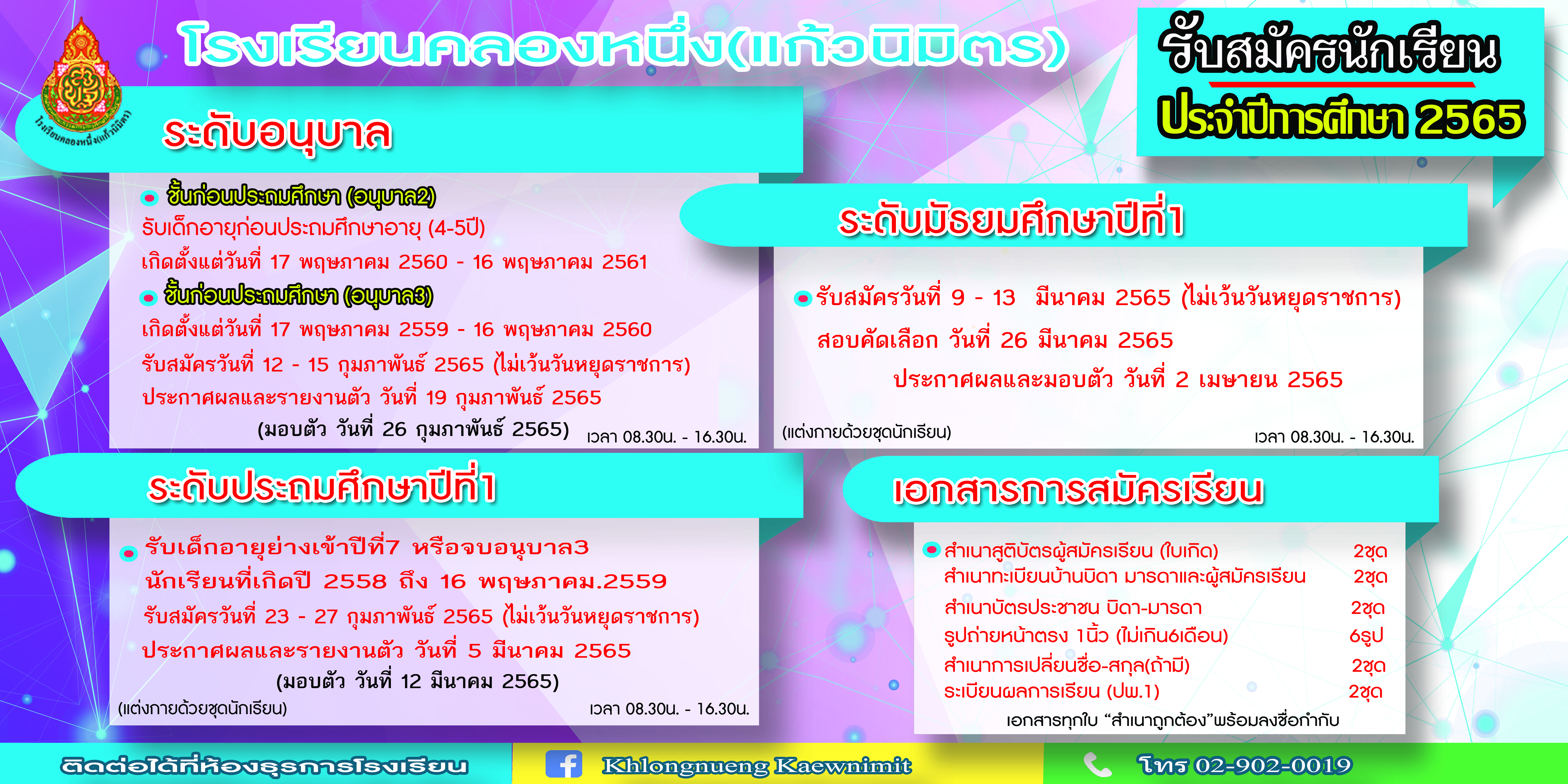 รับสมัครนักเรียนประจำปีการศึกษา 2565