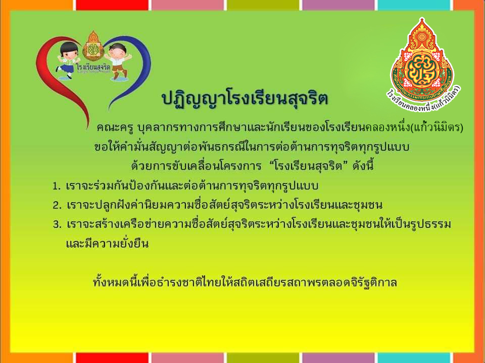 • โรงเรียนคลองหนึ่ง(แก้วนิมิตร)